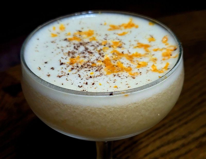 Today’s cocktail, a take on a Boston whiskey sour served up, was created by